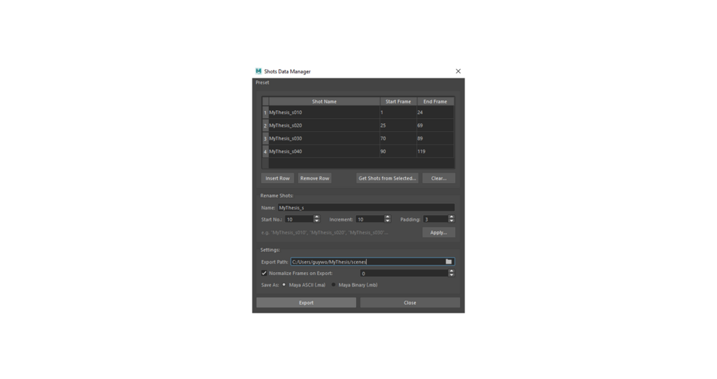 A handy tool for Maya that allows splitting a scene into several other scenes, mainly envisioned to be used on a layout scene in order to split it into numbered shots.
